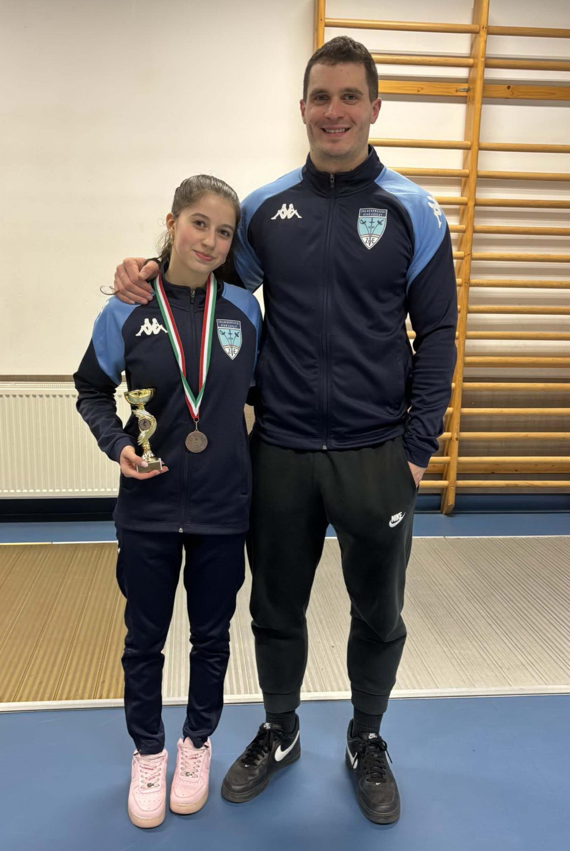 Az újonc lányoknál Darabos Flóra jutott legtovább a versenyben. Flóra a kétfordulós csoportkört hibátlanul teljesítette, így ő is 3.-ként került táblára. Ott 3 magabiztos győzelmet követően egy tussal maradt alul a döntőbe jutásért vívott asszóban. A bronzérme így is az idei év legjobb eredménye a saját korosztályában.