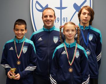 A két legsikeresebb versenyzőnk Szemes Áron gyermek fiú kategóriában és Simon Borbála újonc lány kategóriában volt. Áronnak élete első országos érme tőr versenyen, külön bizakodásra ad okot, hogy másfél éve vív, idén kezdett el versenyezni, és rögtön az első évben már érmet szerzett. Simon Borbála tapasztalt versenyzőként egy múlt heti sérülés után lett 8. helyezett és ezáltal érem boldog tulajdonosa. Mindkettőjüknek szívből gratulálunk!