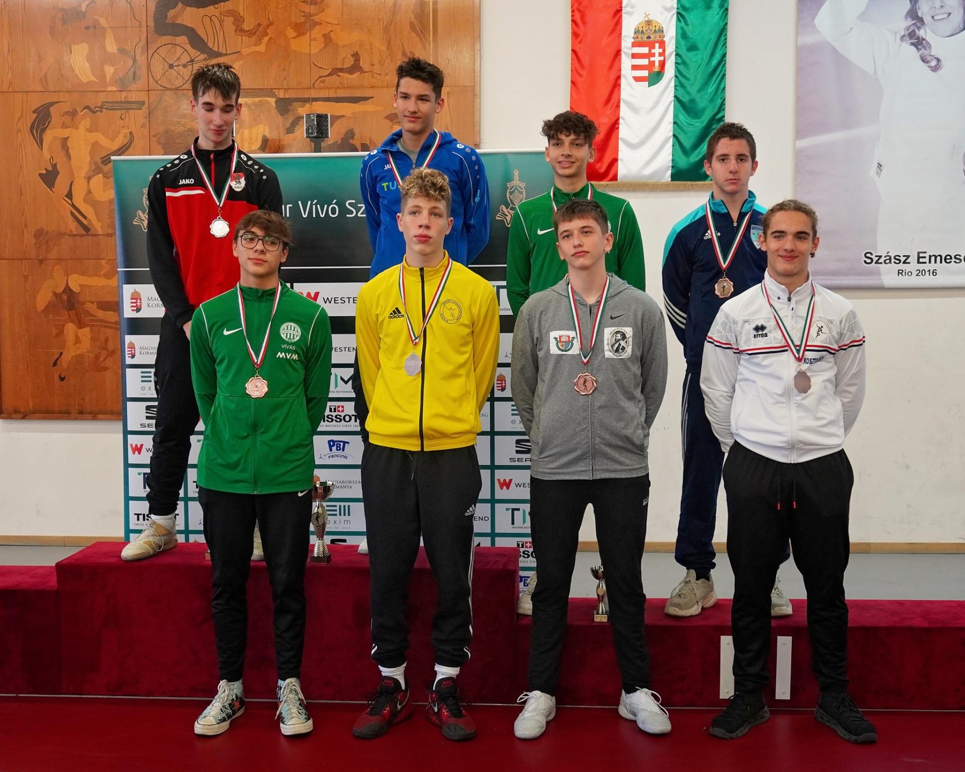 Férfi kadet – 61 induló: 11. Szabó Bálint, 32. Nika Balázs, 35. Csatlós Gellért, 50. Szabó Bence, 56. Hodor Csanád
